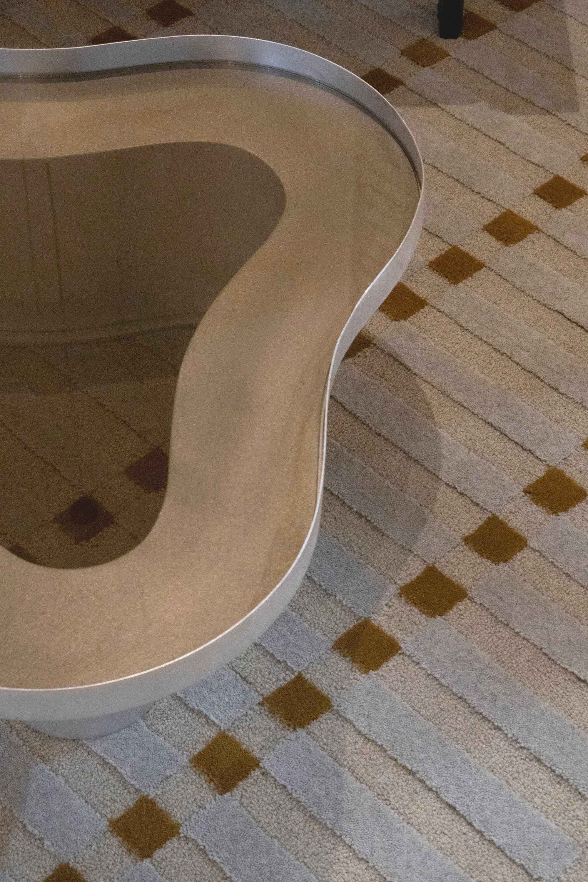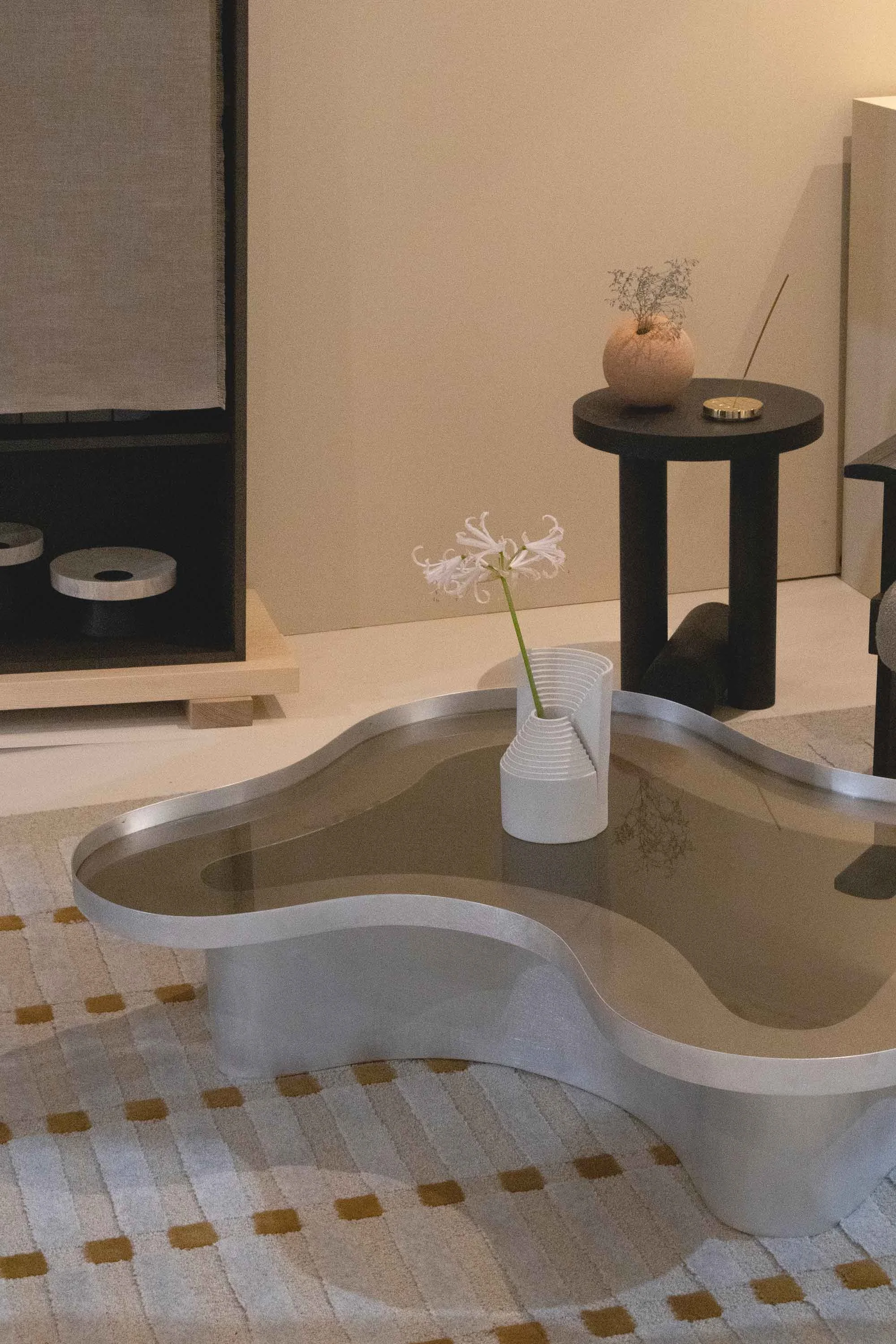 Porto-based design brand Origin Made, run by Singaporean husband-and-wife duo Gabriel Tan and Cherie Er, has launched the Togetherness collection — a series of eight larger furniture items and rugs that mark a new chapter for the brand as it evolves from producing smaller homewares. The collection brings together Asian, Scandinavian and European sensibilities, with designers such as Jenni Roininen, Chris L Halstrøm, Hallgeir Homstvedt and Tan himself. Swedish interior architect Kajsa Melchior’s Duna coffee table is a highlight of the collection, its tinted glass top and undulating brushed aluminium base inspired by the properties of sand.