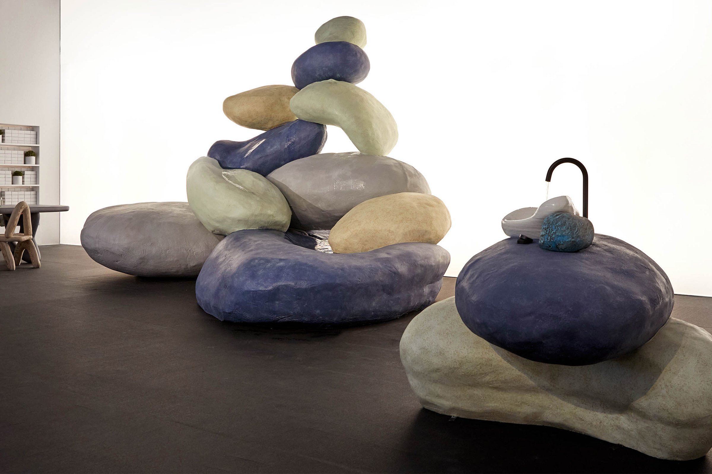 For Rock.01’s Design Miami launch, Arsham designed an installation titled Stone Flow. Made from a series of giant stone-like objects , the work represents the experimental phases of the project and allows viewers deeper insights into the process and product.